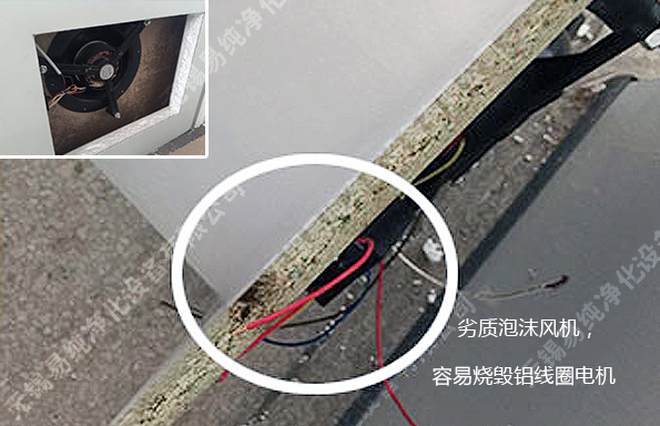 ● 劣質(zhì)泡沫風(fēng)機(jī),容易燒毀鋁線圈電機(jī),質(zhì)量無(wú)保障。