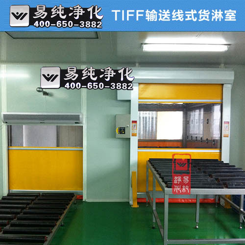 3、電動(dòng)升降門貨淋室(門為電動(dòng)控制上下升降),流水線被截?cái)喑扇糠?,分別為潔凈區(qū)外,貨淋室內(nèi),潔凈區(qū)內(nèi);